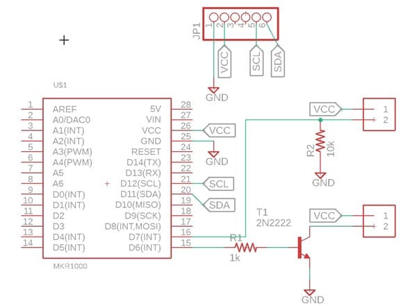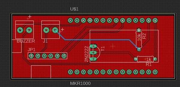 The buzzer will operate under the control of the MKR1000’s GPIO D6 pin.