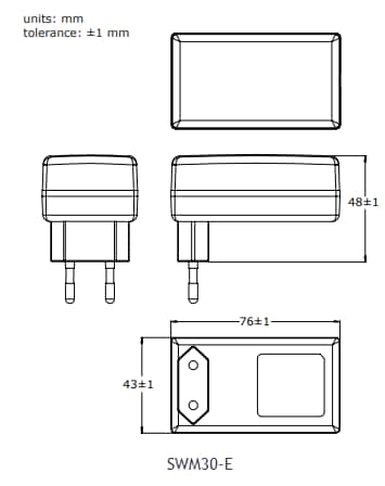 CUI Inc SWM30 AC-DC Medical Power Supplies come with medical 60601-1-2 4th edition EMC safety approvals and offer up to 30W continuous power. These wall plug adapters provide overvoltage (OVP) and short-circuit protection (SCP). CUI Inc SWM30 AC-DC Medical Power Supplies incorporate Class II construction and are designed for 2 x MOPP applications. The SWM30-N variant comes with North American blades and offers <0.1W no-load power consumption. The SWM30-E modules come with European (EU) blades and provide <0.075W no-load power consumption.Features