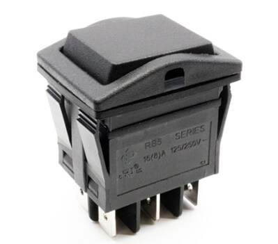 E-Switch RB5 Rocker Switches are designed with high reliability and high current ratings. The switches offer five electrical ratings with IP67-rated ingress protection. The E-Switch RB5 Rocker Switches feature dual illumination in five colors and eight marking options. The RB5 series provides a 22mm x 30.2mm industry-standard cutout for front-panel mounting. The switches perform two-pole maintained or momentary functions. The RB5 Rocker Switches are ideal for floor care appliances, electrical housewares, medical/dental equipment, industrial controls, commercial appliances, and instrumentation applications.