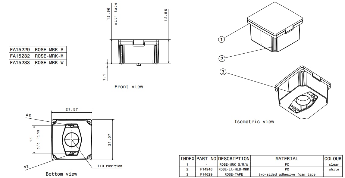 LED Lenses & Assemblies Square Lens 1 Position | Cree, Lumileds |